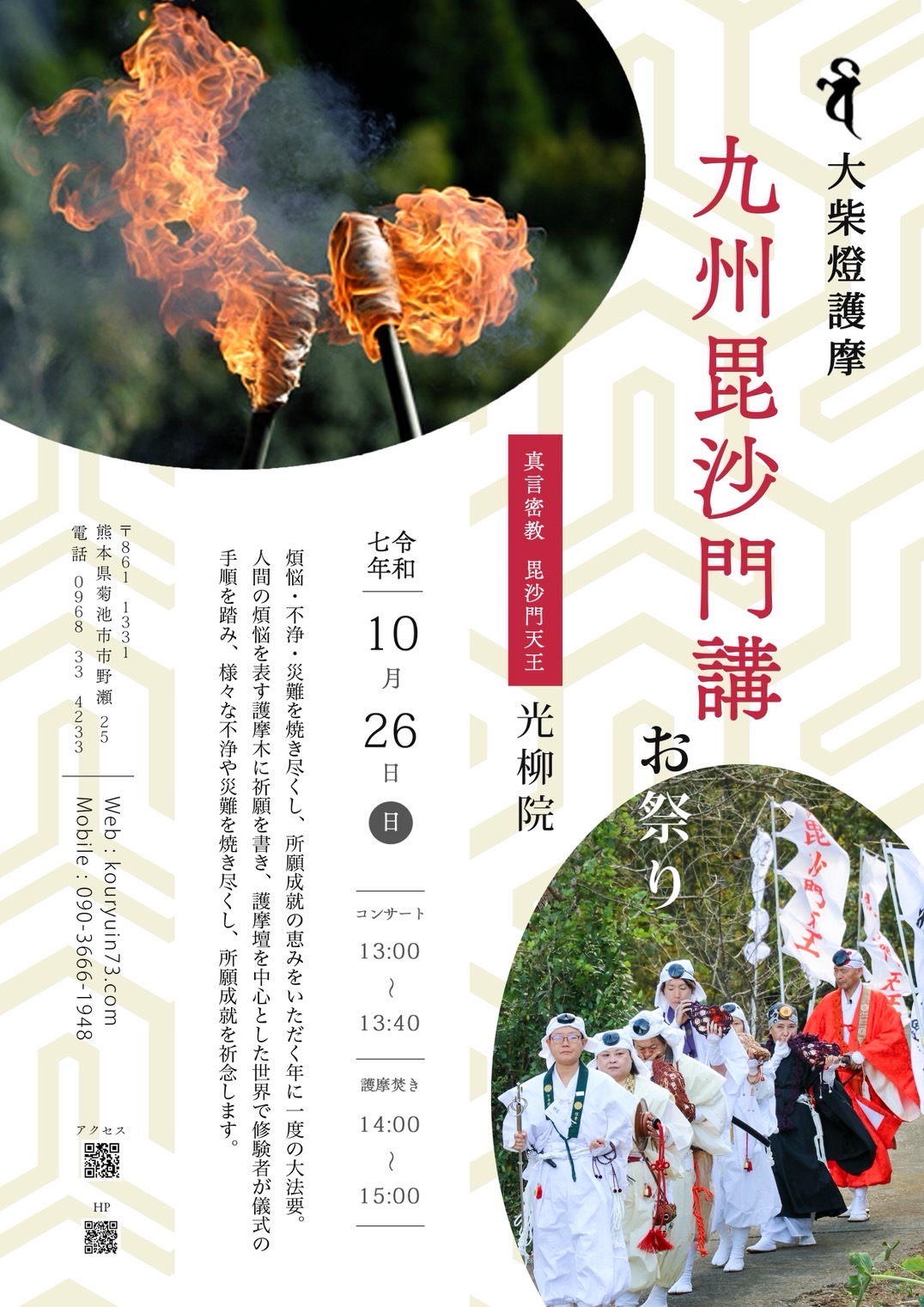 光柳院では毎年10月に「毘沙門天 大柴燈護摩」を開催します。